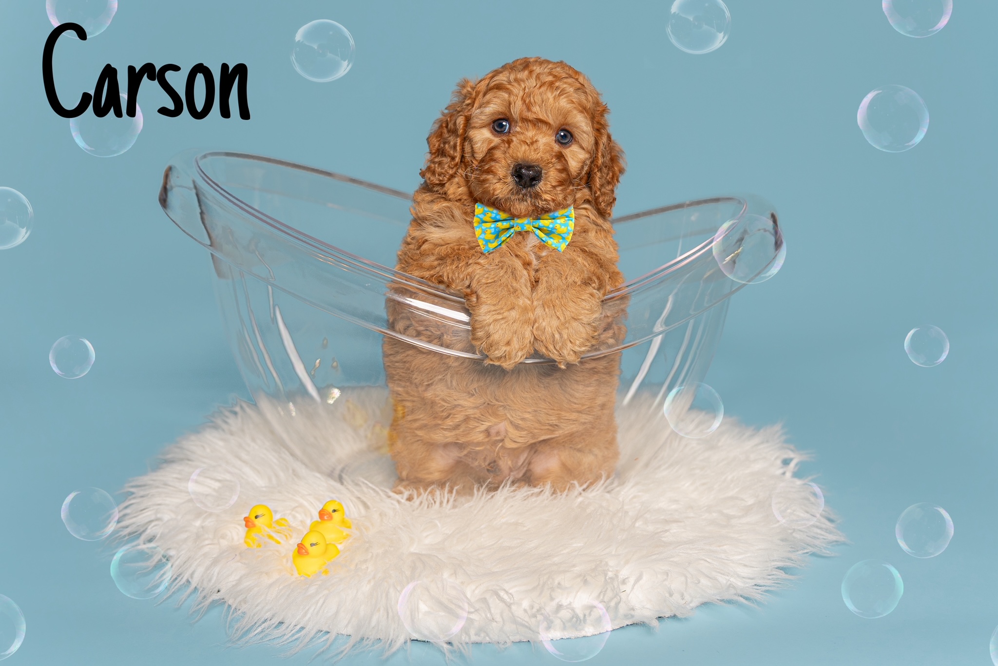 Hi Rachel, Zeke is settling beautifully in his new home. He's been eating well and sleeping through the night from day 1. All potty breaks have been outside - I put bells on the door that we use when we go outside and last night when the door opened he came running from the other room to go out to potty. He is soooo smart and loves loves loves the snow. Today is his and Cooper's 1st vet visit here. Doodle Kisses and Love